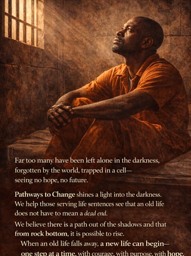 Even with a life sentence, change is still possible—and it still matters. A person’s surroundings may be restricted, but their mindset, character, and daily choices can still grow stronger with the right guidance and structure. Pathways To Change is built to help lifers take meaningful steps forward by addressing the thinking patterns, emotional triggers, and habits that keep people trapped inside long before the cell door closes. Through consistent work—one decision at a time—individuals can develop accountability, self-control, and purpose, creating a new direction from within. Because real change doesn’t start with a release date; it starts with a choice, a plan, and a path worth walking.